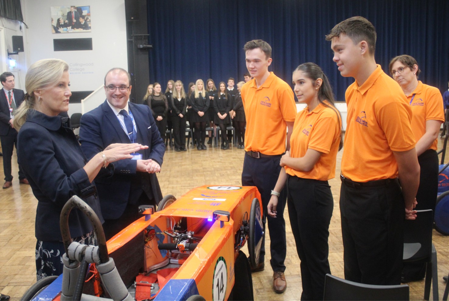 The Duchess of Edinburgh took part in activities showcasing environmental sustainability initiatives at the College and met students who have enjoyed national and international success in racing electric cars and debating.